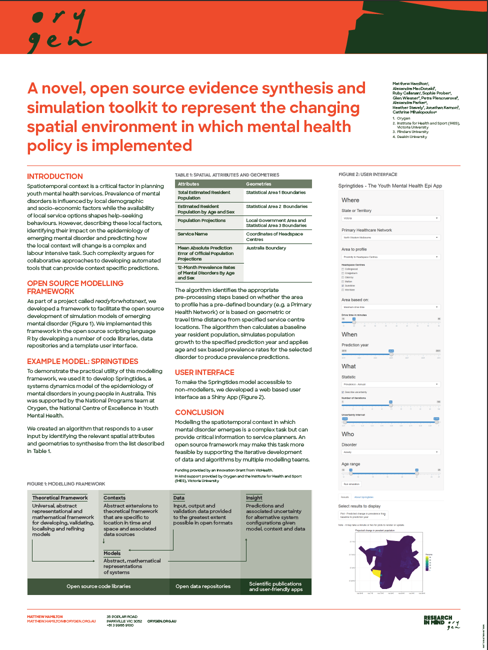 International academic conference poster presentations relating to the readyforwhatsnext project have been made available in the project’s scientific summaries dataset https://doi.org/10.7910/DVN/QBZFQV. The two posters that have been uploaded summarise the project’s conceptual model and how its systems dynamics model was adapted to develop the Springtides spatial epidemiology simulator.